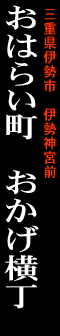 『おかげ横丁』名前の由来は?伊勢神宮・内宮の門前町で約300年商いを続けている「赤福」が、平成5年につくった横丁。長期間にわたって商いを続けられたのもお伊勢さんの「おかげ」という意味と、江戸時代に流行った「おかげ参り」が命名の由来とか。